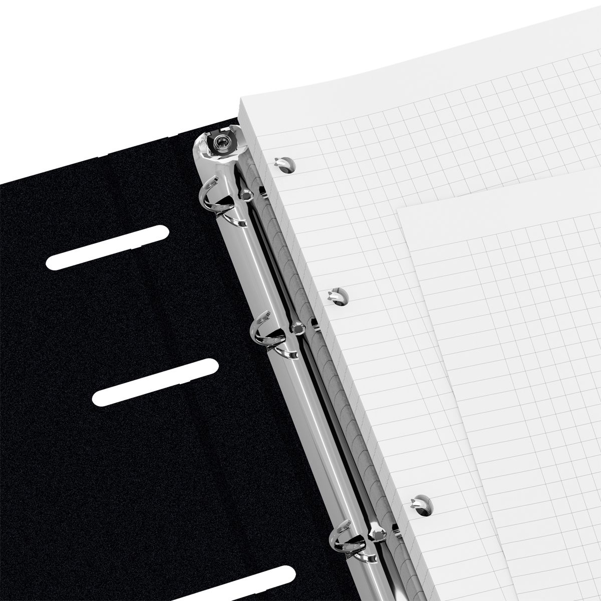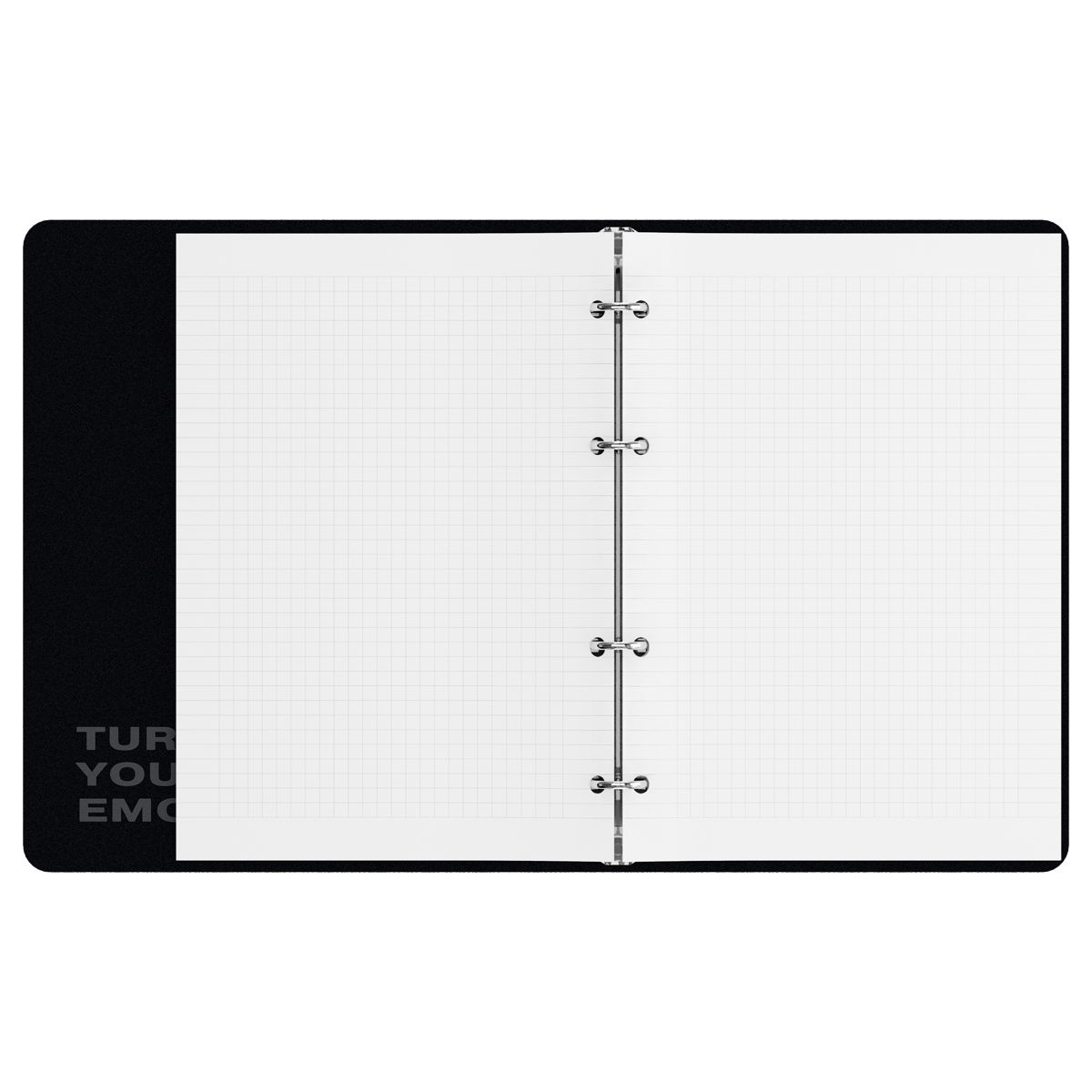Механизм из 4 колец обеспечивает быструю смену или добавление листов при необходимости. Обложка сделана из плотного картона, который надёжно защищает внутренний блок. Отделка обложки — soft-touch ламинация. Тетрадь упакована в картон и индивидуальный пакет.