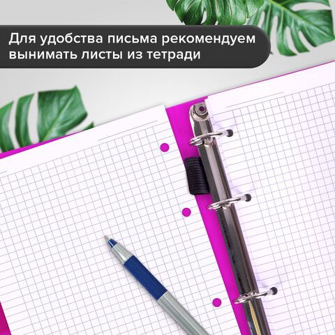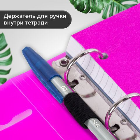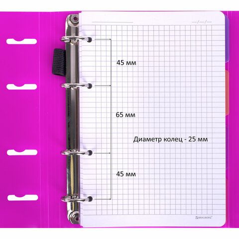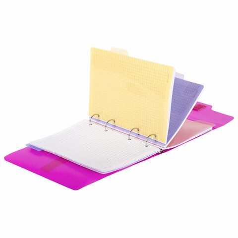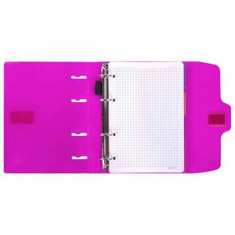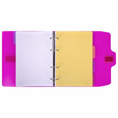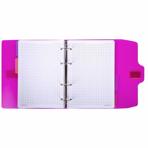 Тетрадь на кольцах А5 175х220 мм, 120 л., пластик, на липучке, с разделителями, BRAUBERG, Розовый, 404635