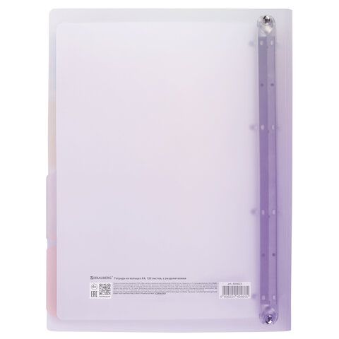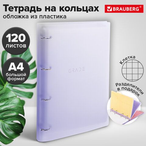 Тетрадь на кольцах БОЛЬШАЯ 305х235 мм А4, 120 л., пластик, с разделителями, BRAUBERG, Фиолетовый, 404623