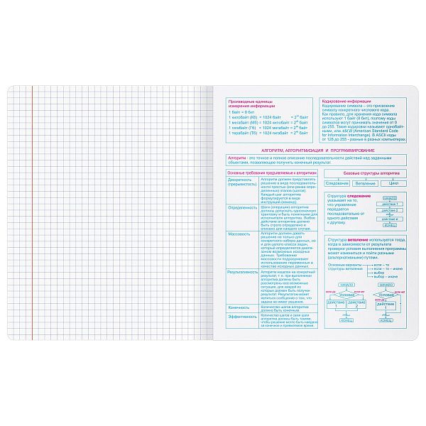 - Тетради по информатике — структурировать алгоритмы и блок-схемы.
