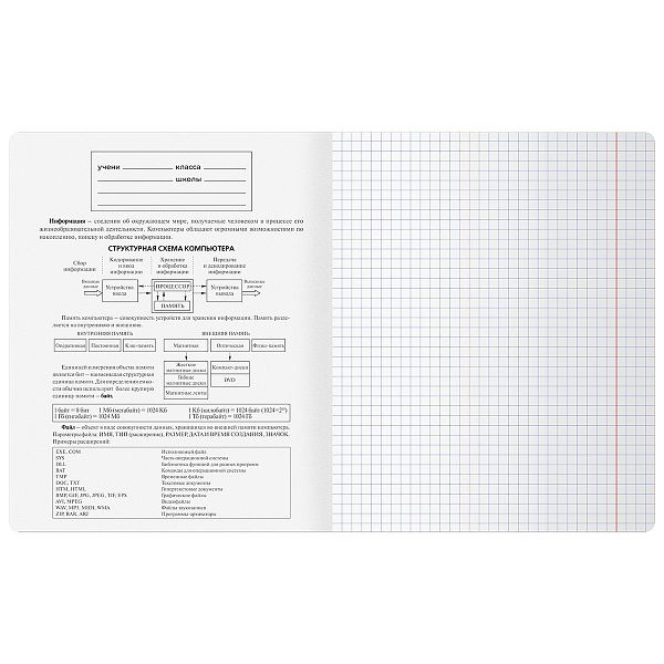 - Тетради по информатике — структурировать алгоритмы и блок-схемы.