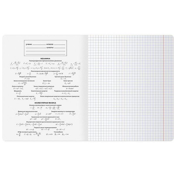 - Тетрадь предметная по физике с клеткой удобна для записей формул и чертежей.