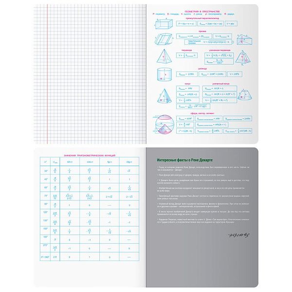 - Тетрадь "Геометрия" (48 листов) с плотной бумагой (65 г/м²) выдерживает интенсивное использование и подходит для сложных задач.