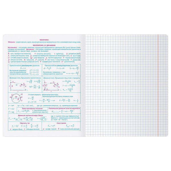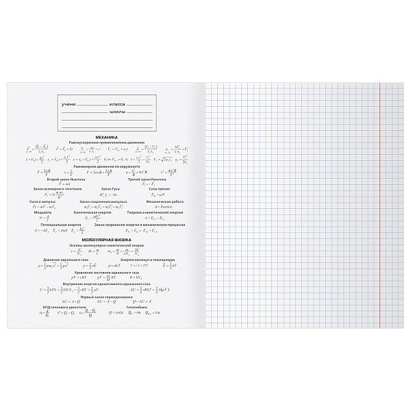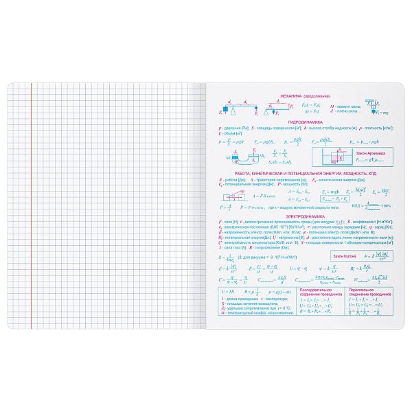 - Тетрадь предметная по физике с клеткой удобна для записей формул и чертежей.