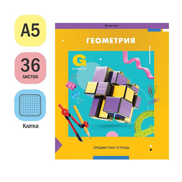 - Тетрадь "Геометрия" (48 листов) с плотной бумагой (65 г/м²) выдерживает интенсивное использование и подходит для сложных задач.