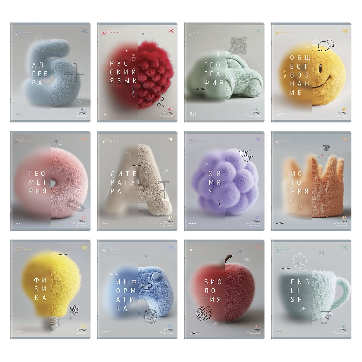 Комплект (12 шт.) предметных тетрадей 48л. BG "Пушистая информация", микро sandy-touch лак