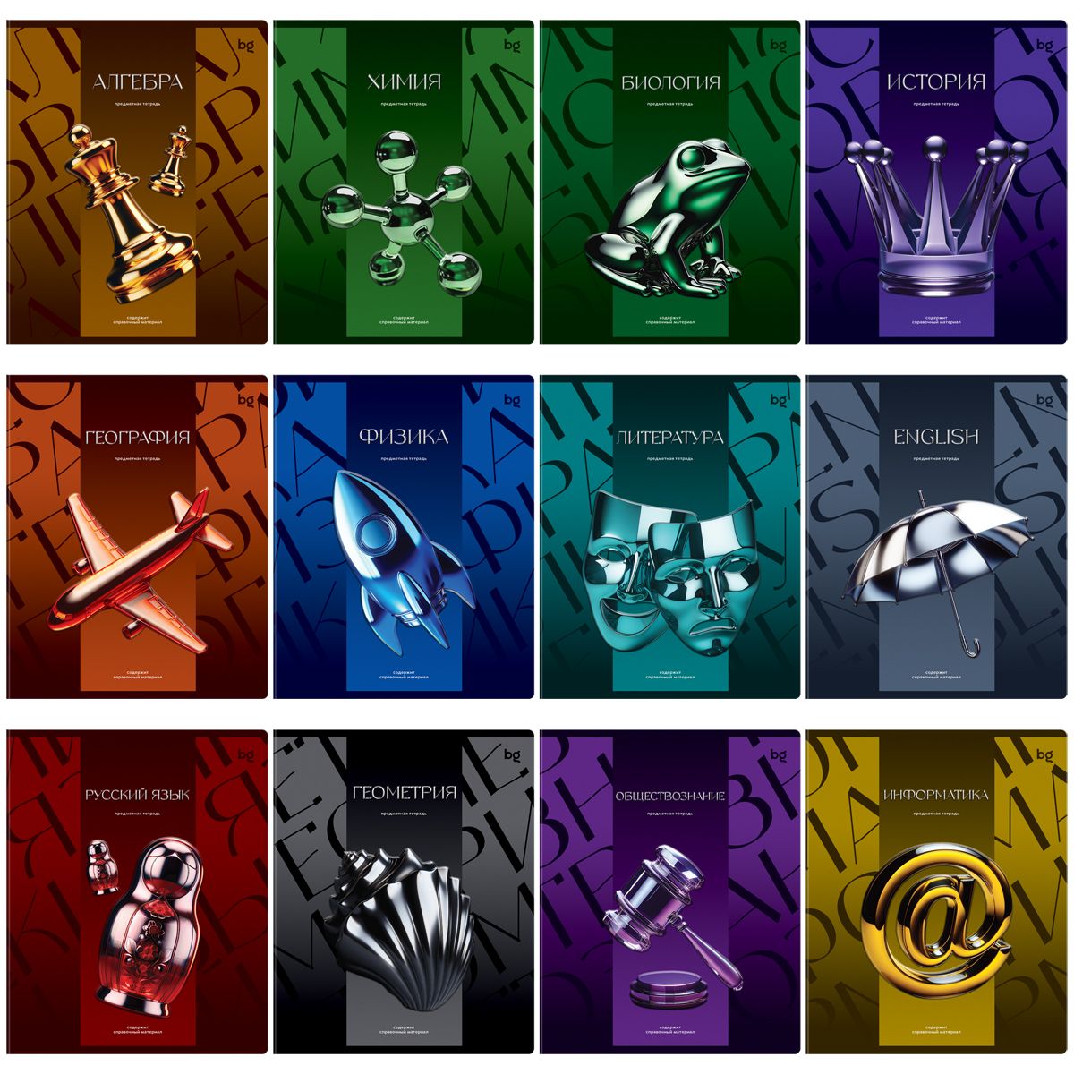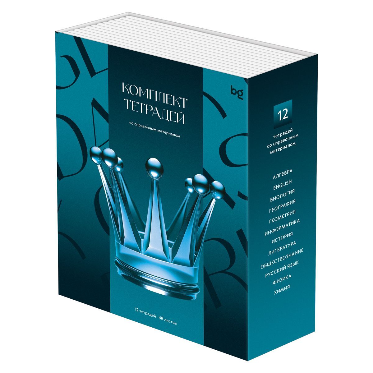 Комплект (12 шт.) предметных тетрадей 48л. BG "Темное стекло", конгрев, твин-лак, 70г/м2