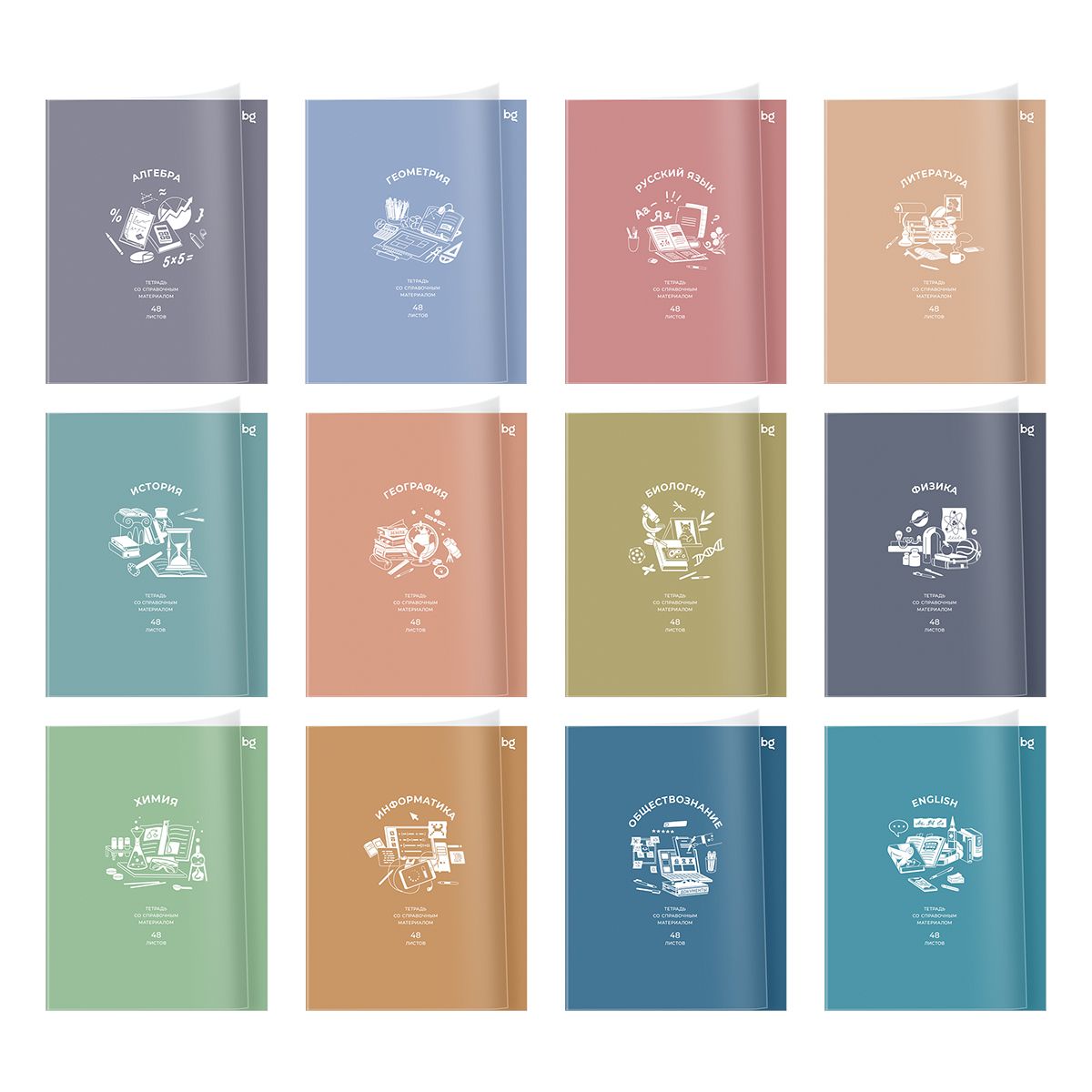Комплект (12 шт.) предметных тетрадей 48л. BG "Ясно и понятно", пластиковая обложка
