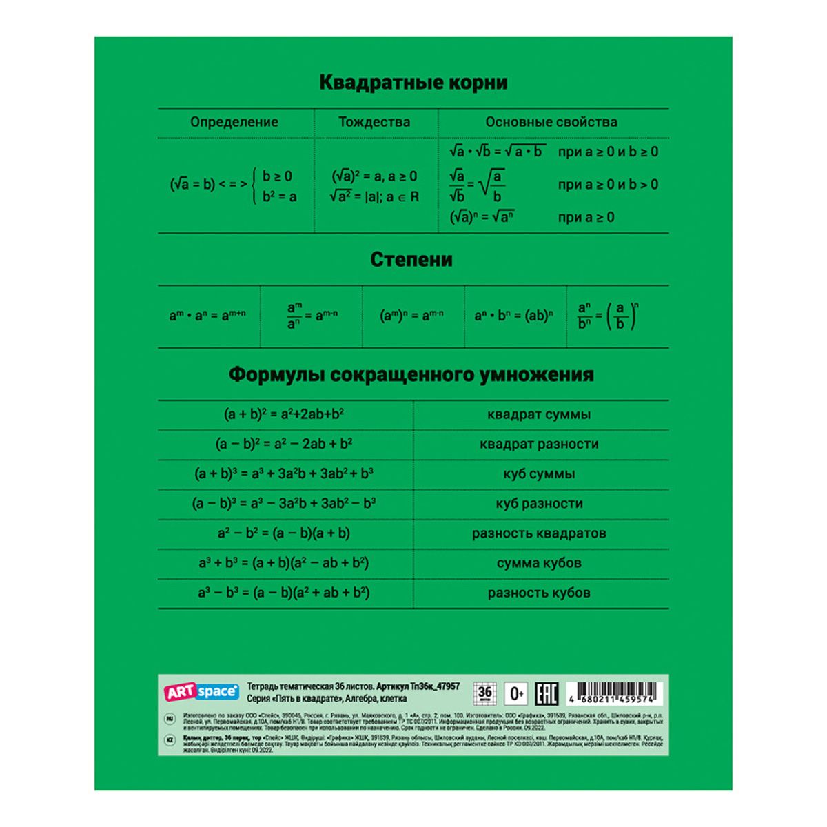 Тетрадь предметная 36л. ArtSpace "Пять в квадрате" - Алгебра, эконом