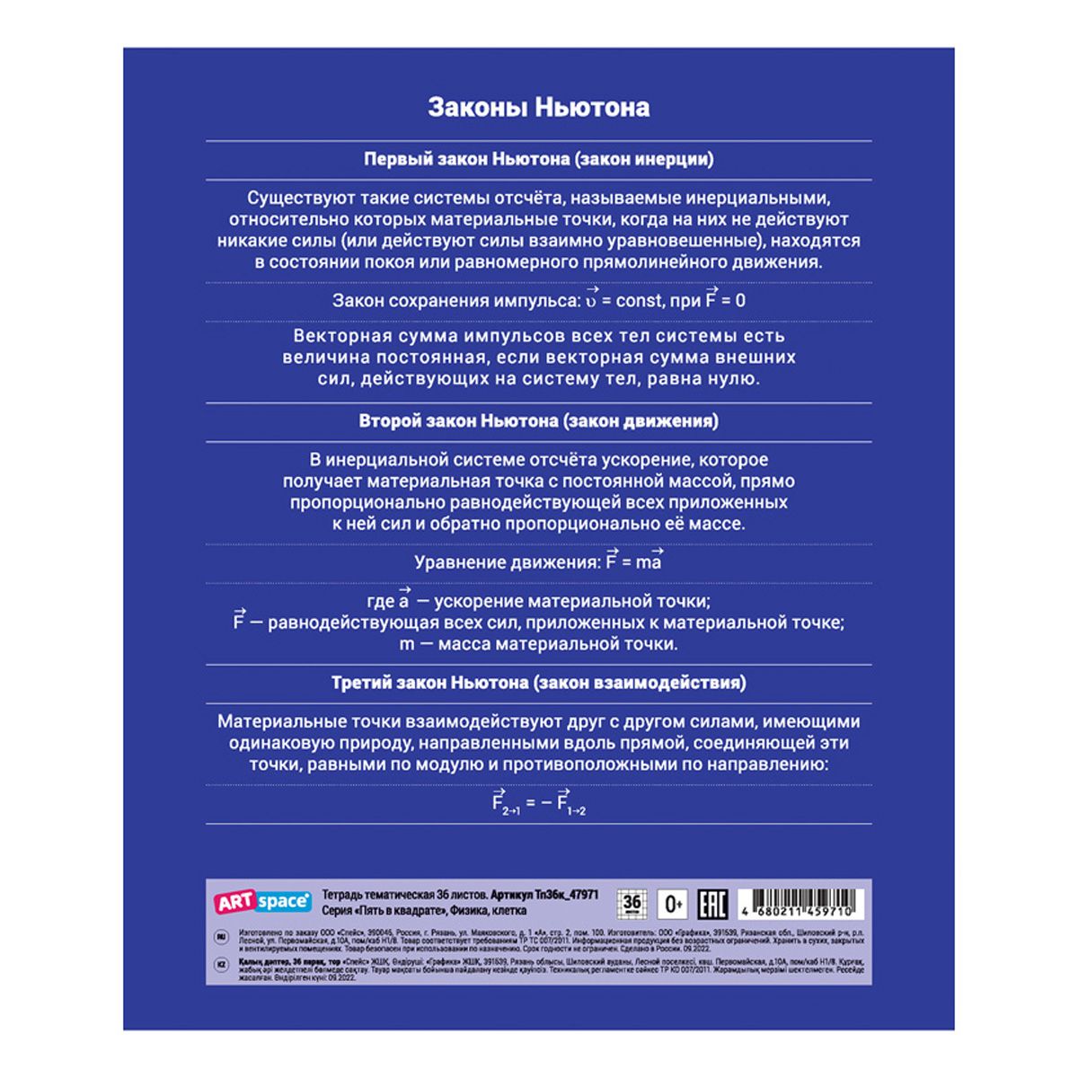 Тетрадь предметная 36л. ArtSpace "Пять в квадрате" - Физика, эконом