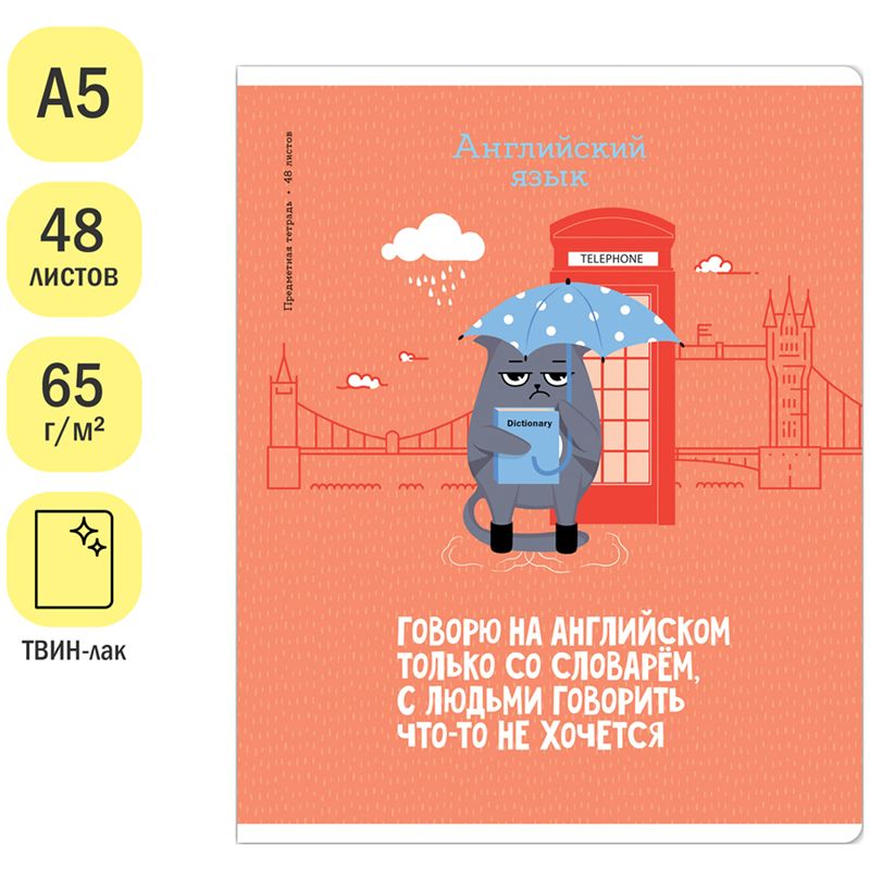 Тетрадь предметная 48л. ArtSpace "Котоцинизм" - Английский язык, ТВИН-лак