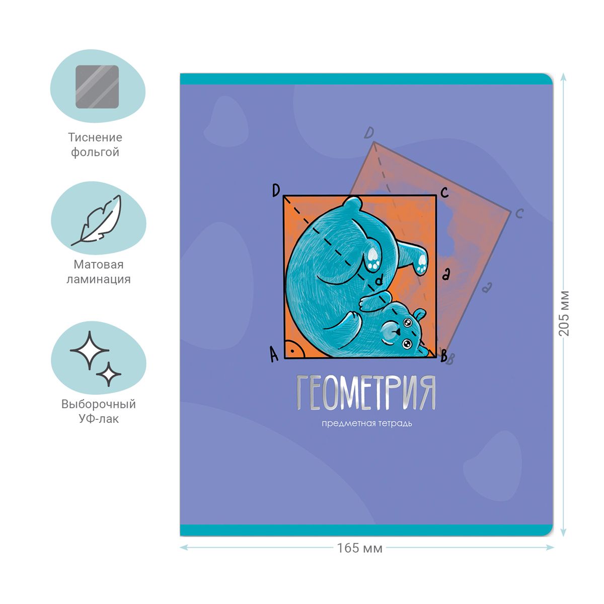Тетрадь предметная 48л. MESHU "Ученый MISHKA" - Геометрия, матовая ламинация, выборочный УФ-лак, тиснение фольгой