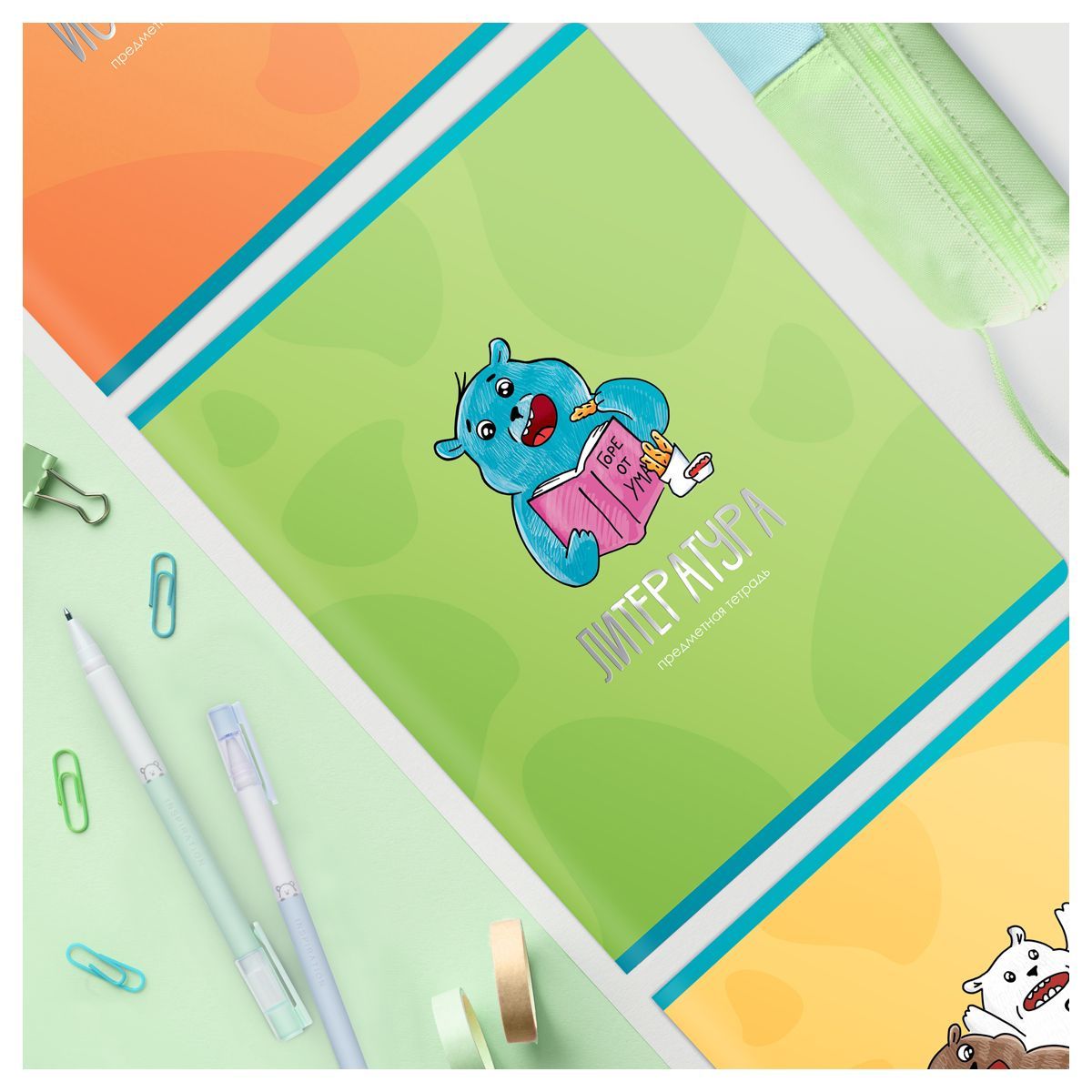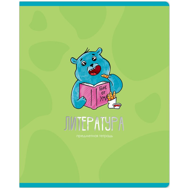 Тетрадь предметная 48л. MESHU "Ученый MISHKA" - Литература, матовая ламинация, выборочный УФ-лак, тиснение фольгой