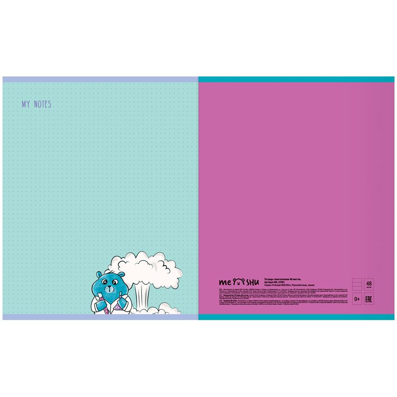 Тетрадь предметная 48л. MESHU "Ученый MISHKA" - Русский язык, матовая ламинация, выборочный УФ-лак, тиснение фольгой