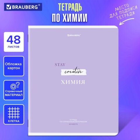 Тетрадь предметная CREATIVE 48 л., обложка картон, ХИМИЯ, клетка, подсказ, BRAUBERG, 405120