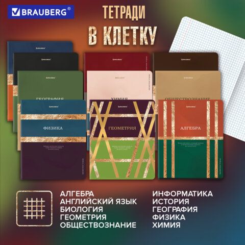 Тетради предметные, КОМПЛЕКТ 12 ПРЕДМЕТОВ, 48 л., матовая ламинация, фольга, BRAUBERG "GOLDY", 405178