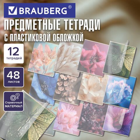 Тетради предметные, КОМПЛЕКТ 12 ПРЕДМЕТОВ 48 л., пластиковая обложка, BRAUBERG "PURE NATURE", 405543