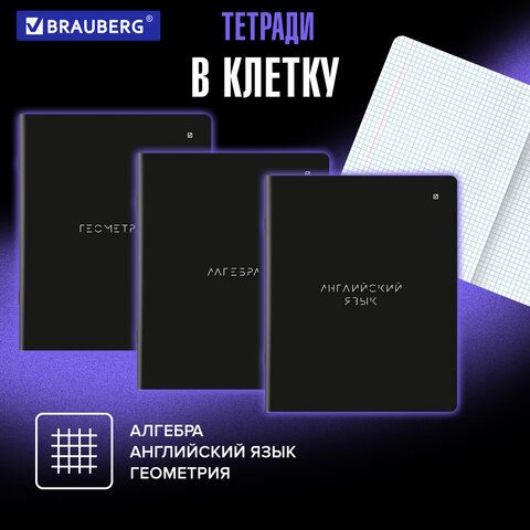 Тетради предметные, КОМПЛЕКТ 5 ПРЕДМЕТОВ, 48 л., матовая ламинация, BRAUBERG "MINIMAL", 405185
