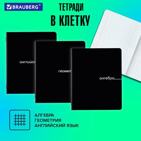 Тетради предметные, КОМПЛЕКТ 5 ПРЕДМЕТОВ, 48 л., обложка картон, BRAUBERG "BLACK", 405184