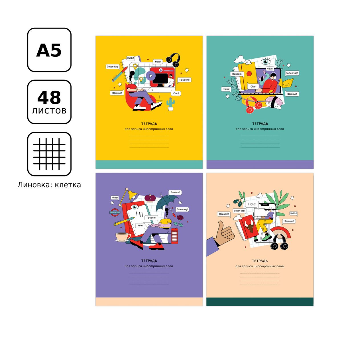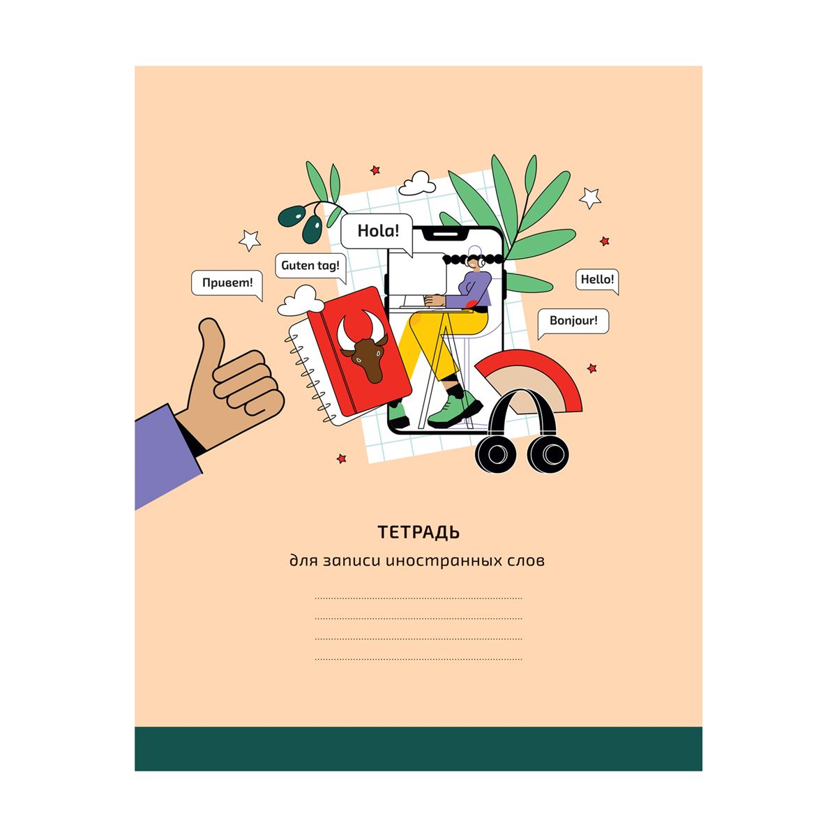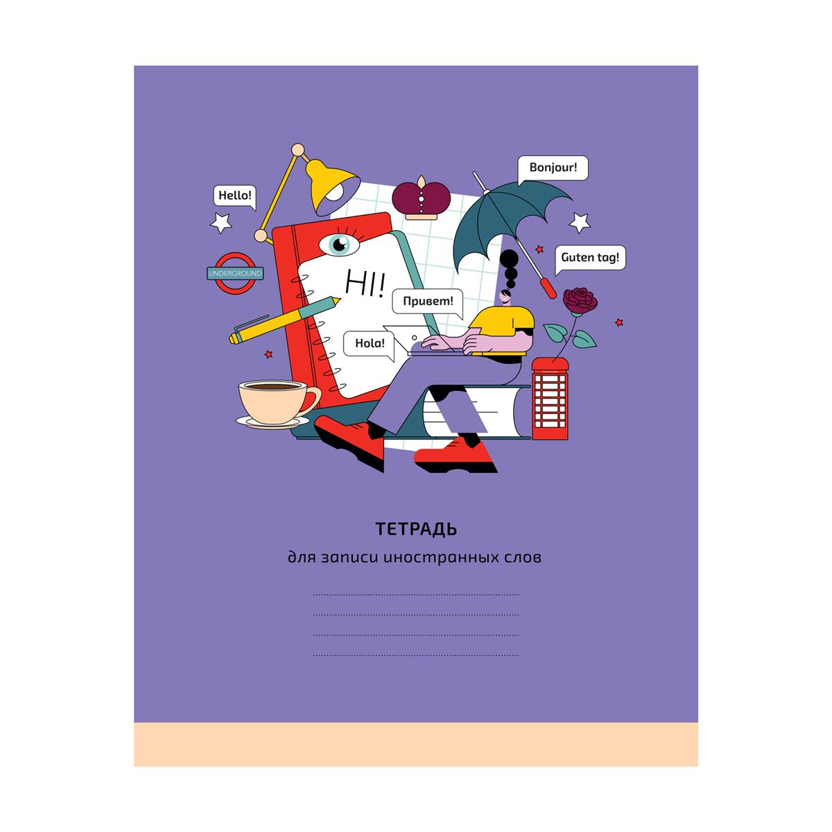 Тетрадь для записи иностранных слов BG серии «Привет - Hello» формата А5 (165*205) на скрепке отлично подойдет для ведения словаря при изучении языков. Внутренний блок – это 48 листов офсетной бумаги плотностью 65 г/м². Линовка – линия в три колонки: «Слово», «Транскрипция», «Перевод». Обложка выполнена из мелованного картона с отделкой ВД-лаком. На обложке оригинальный рисунок на тему изучения иностранных языков.