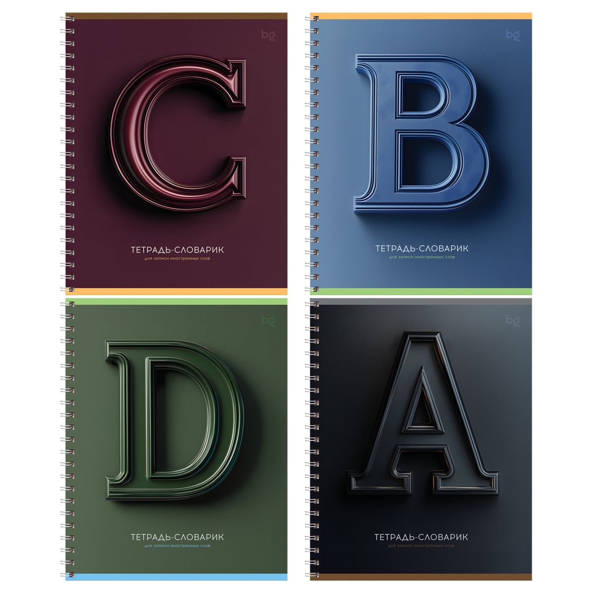 Тетрадь-словарик 48л., А5 для записи иностранных слов на гребне BG "3D буквы", выборочный лак