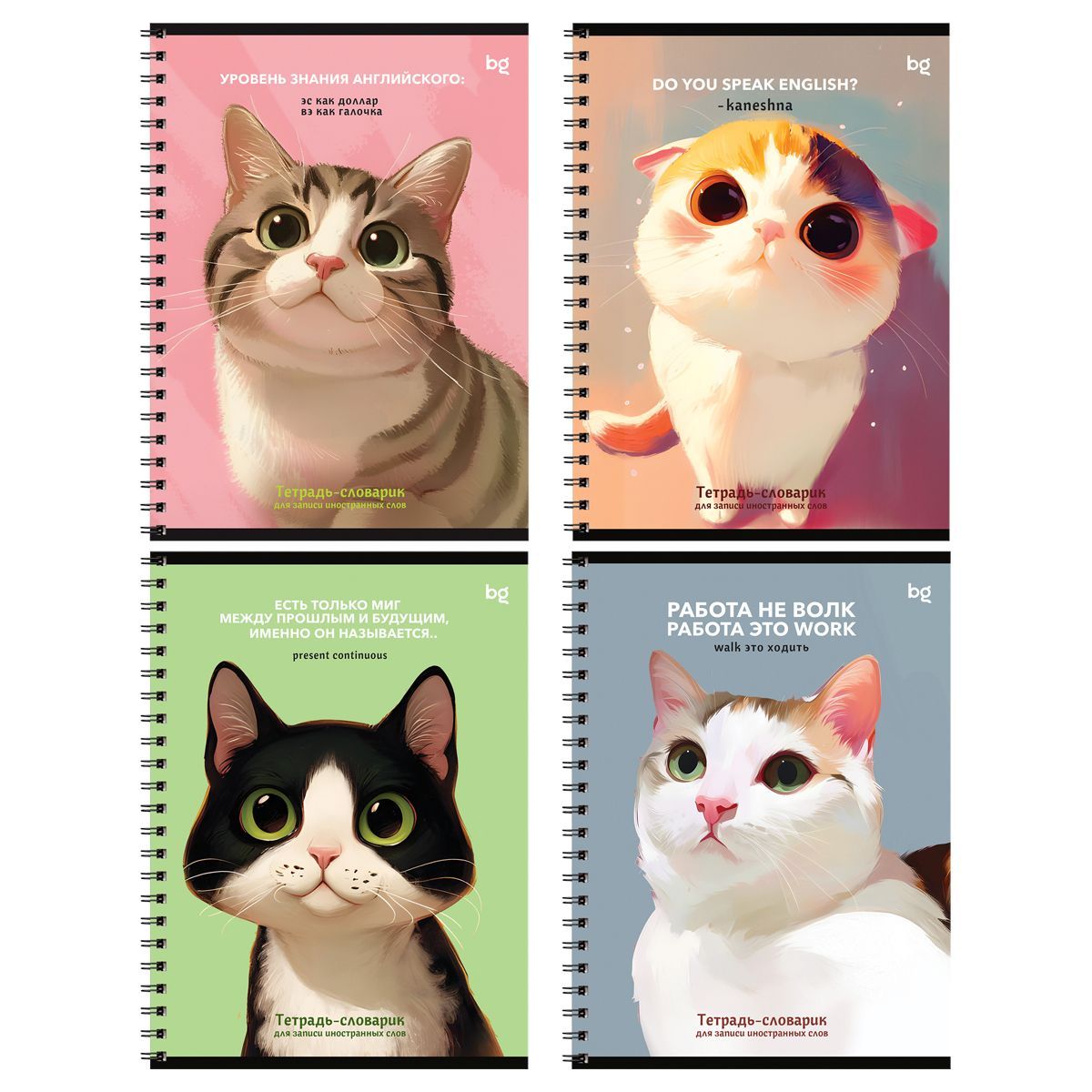 Тетрадь-словарик 48л., А5 для записи иностранных слов на гребне BG "Умные кошки"