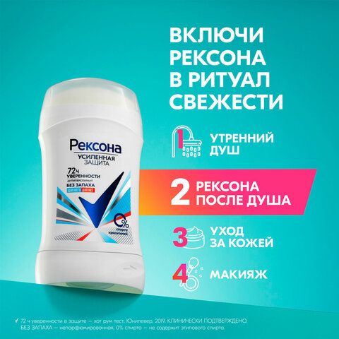 Дезодорант-антиперспирант карандаш 40мл REXONA "Без запаха", усиленная защита, ш/к 45