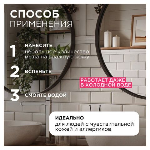 Это мыло эффективно удаляет бактерии и вирусы, снижая риск передачи инфекций. Особенно актуально для мест с высокой проходимостью: больниц, офисов и детских садов, где поддержание чистоты критически важно.