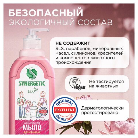 Содержит компоненты, которые предотвращают пересушивание и ухаживают за кожей. Особенно полезно при частом мытье рук, сохраняя их мягкими и ухоженными.