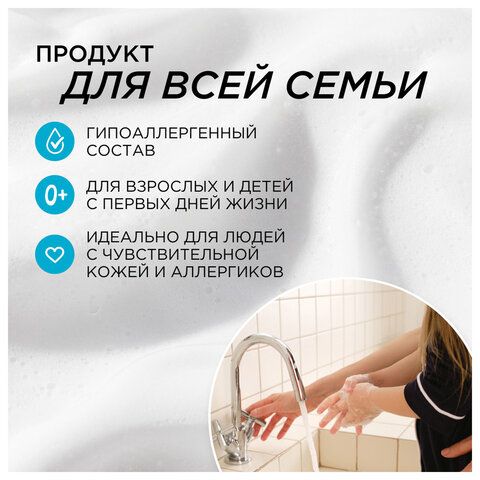Создаёт мягкую пену, которая экономично расходуется и приятно ощущается на коже. Идеально для мест с высокой проходимостью — офисов, торговых центров, спортзалов. Подходит для чувствительной кожи благодаря своей мягкой текстуре.