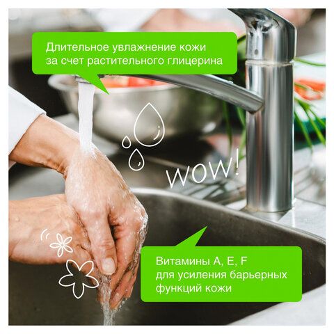 Содержит компоненты, которые предотвращают пересушивание и ухаживают за кожей. Особенно полезно при частом мытье рук, сохраняя их мягкими и ухоженными.