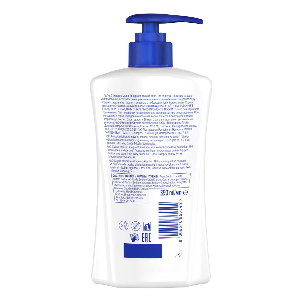 Мыло жидкое Safeguard "Алоэ", антибактериальное, с дозатором, 390мл (ПОД ЗАКАЗ)