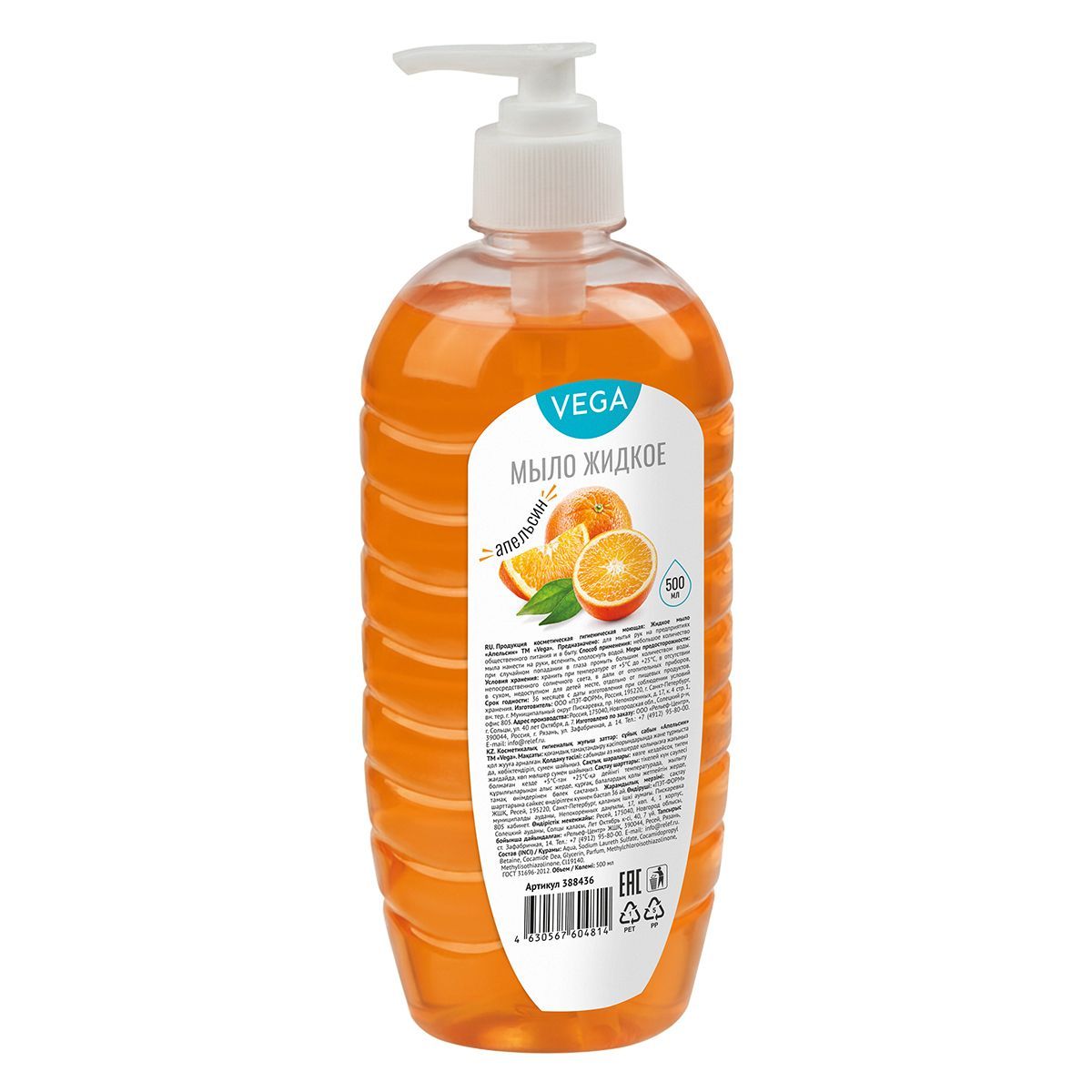 Мыло жидкое Vega "Апельсин", дозатор, 500мл