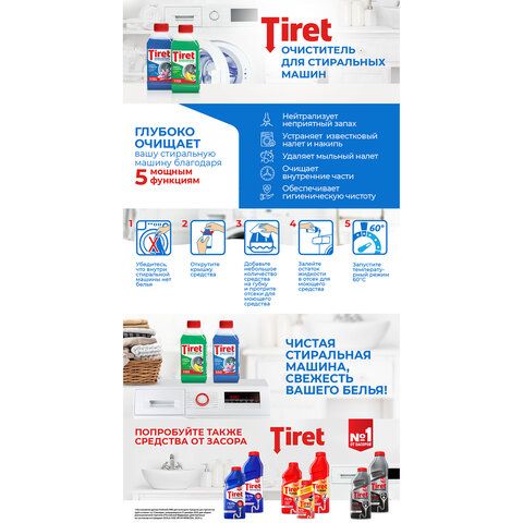 Очиститель для стиральных машин от накипи, грязи и запаха TIRET 250 мл "Цветочный", 3186202