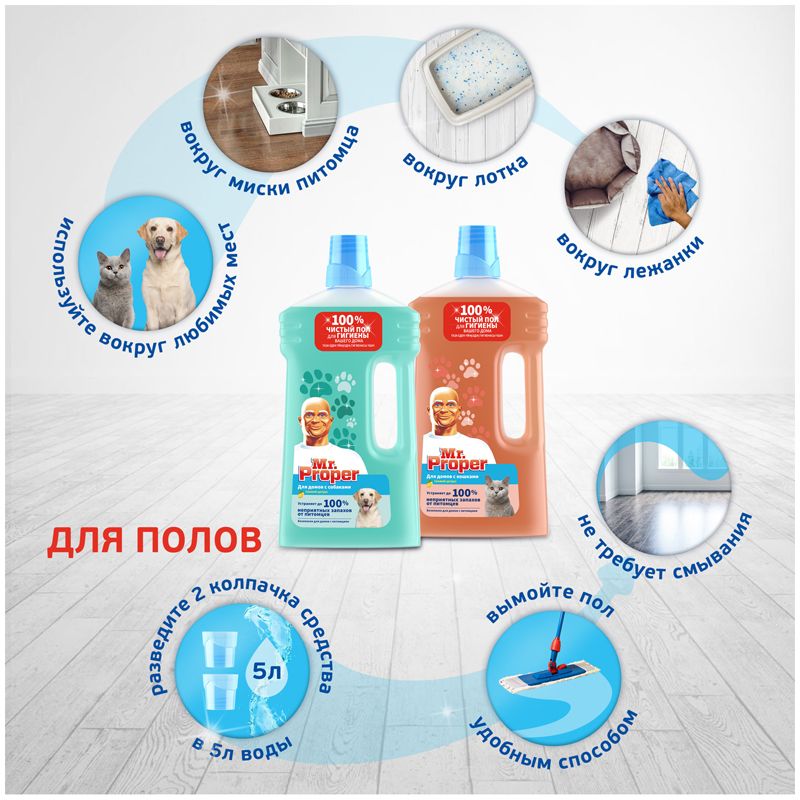 Средство для мытья пола Mr.Proper "Для домов с кошками", Цитрус, жидкий, 1л (ПОД ЗАКАЗ)