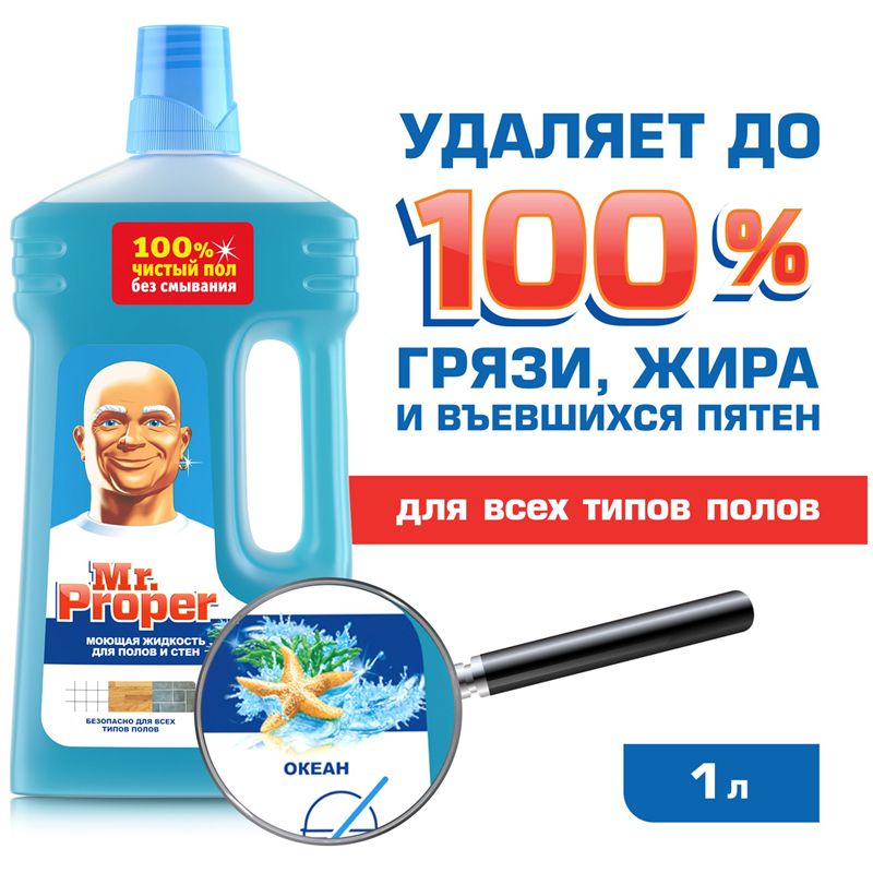 Средство для мытья полов и стен Mr.Proper "Океан", 1л