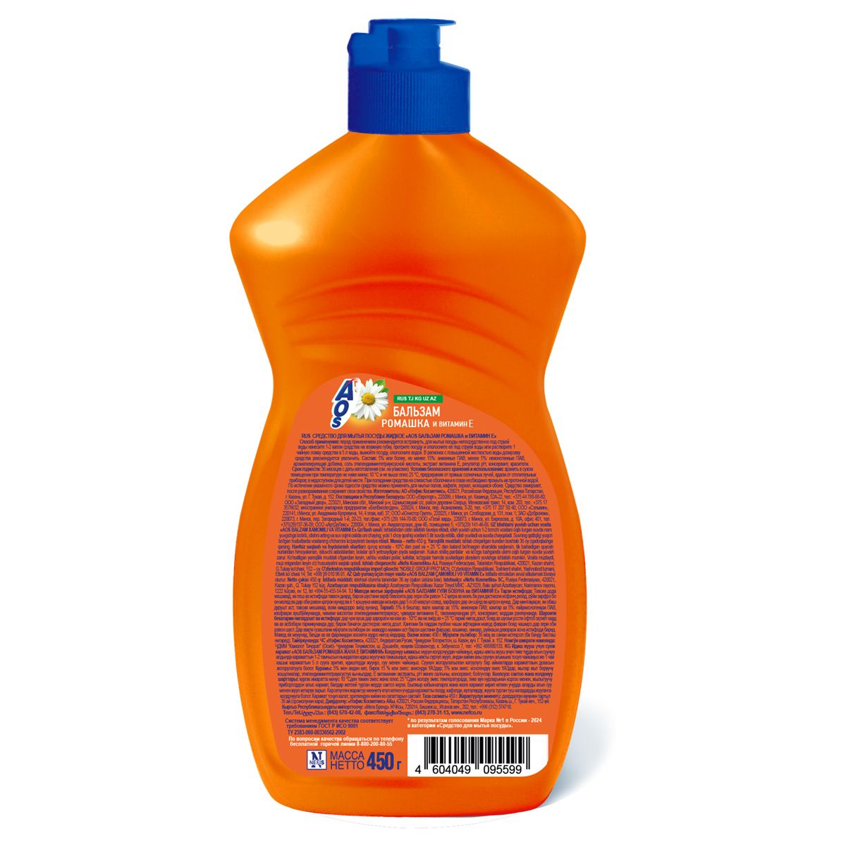 Средство для мытья посуды AOS "Бальзам Ромашка и Витамин Е", 450мл