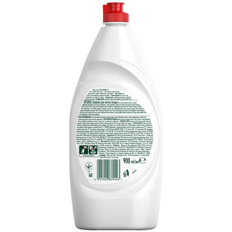 Средство для мытья посуды Fairy "Сочный лимон", 900мл