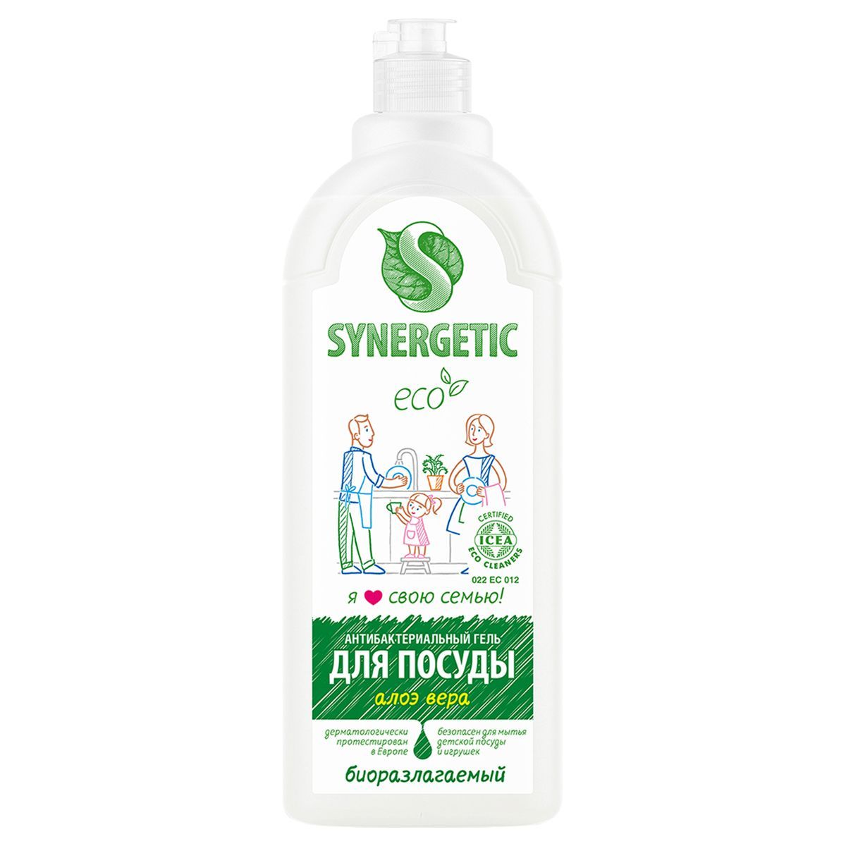Средство для мытья посуды, фруктов, игрушек Synergetic "Алоэ", антибакт., концентрат, с дозатором, 1л