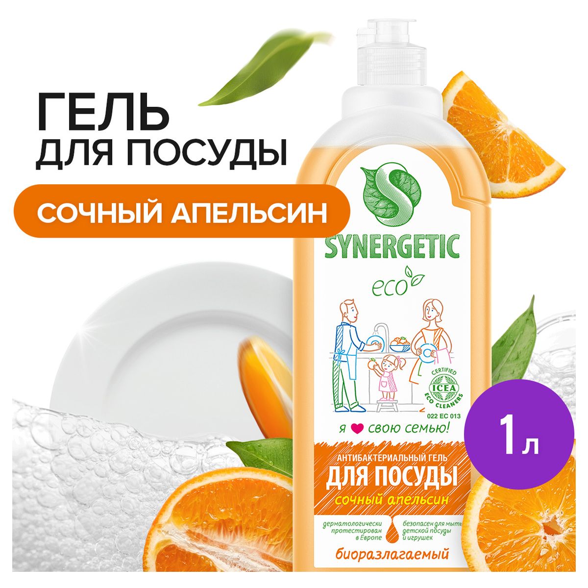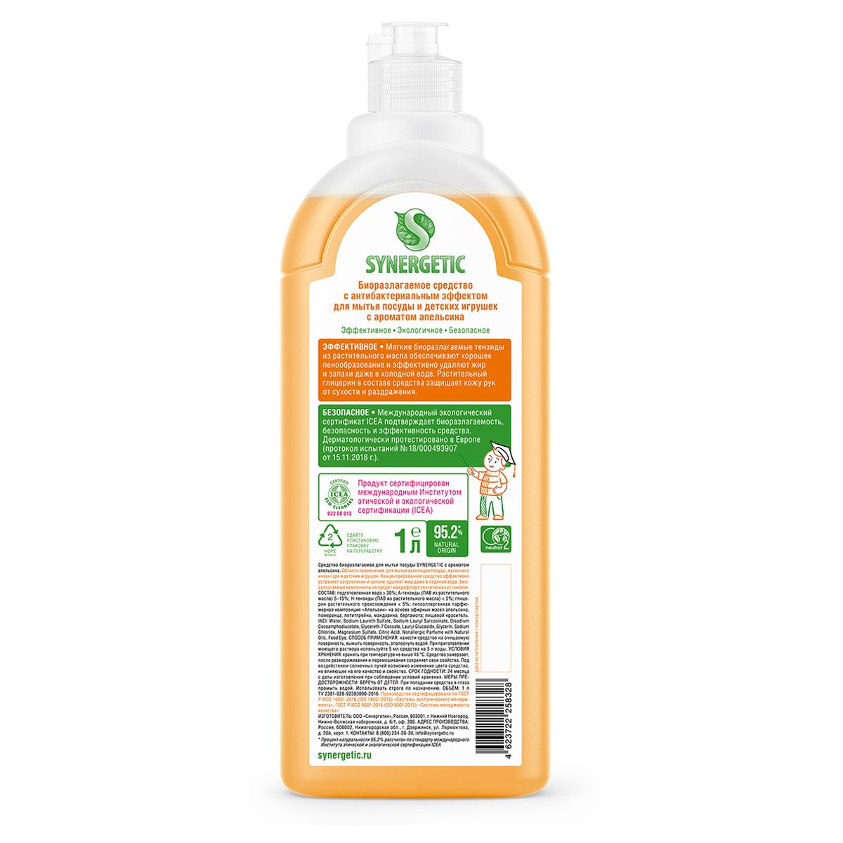 Средство для мытья посуды, фруктов, игрушек Synergetic "Сочный апельсин", антибакт, с дозатором, 1л