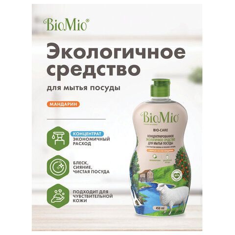 Средство для мытья посуды, овощей и фруктов 450мл BIOMIO "Мандарин", ш/к 04437, 508.04089.1801