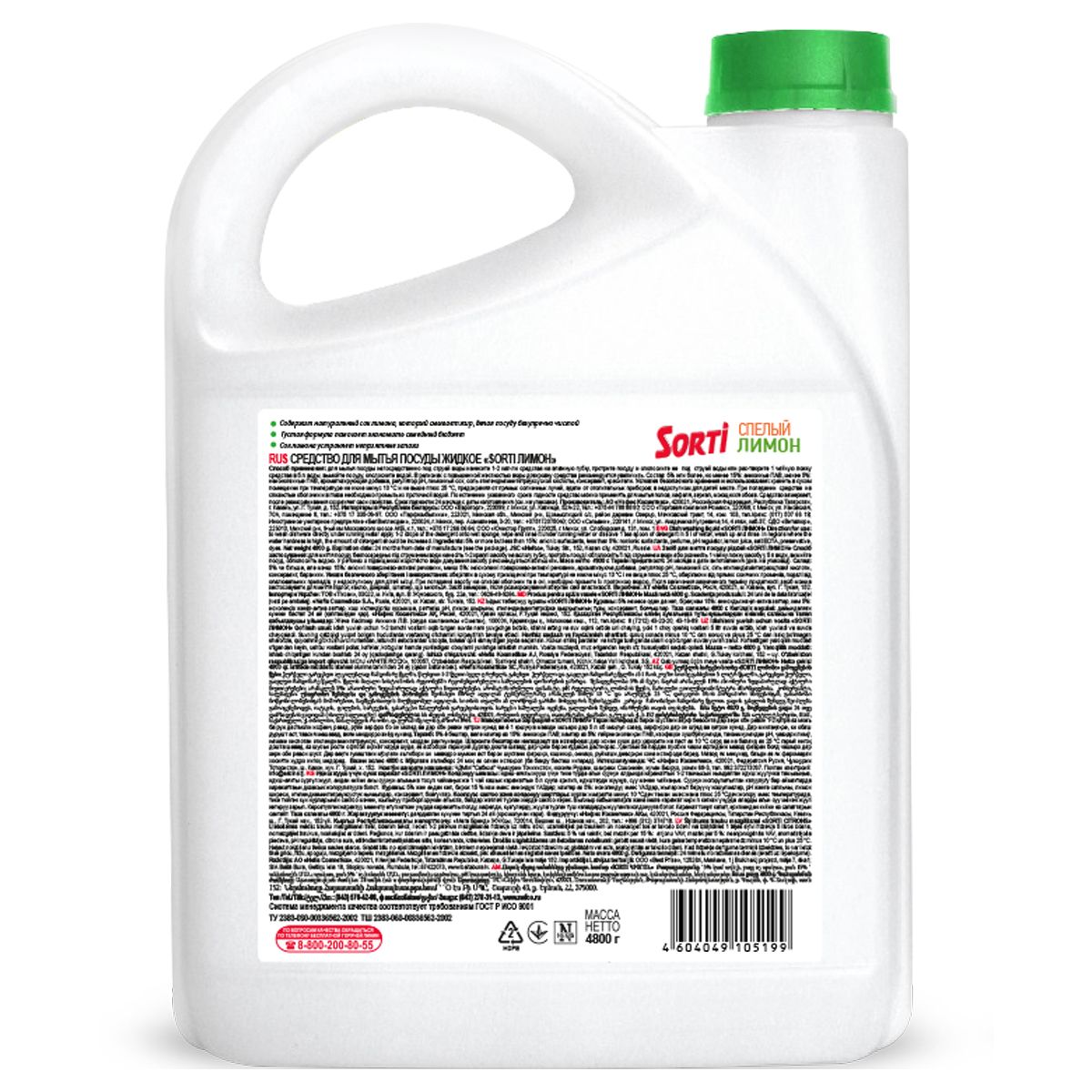 Средство для мытья посуды Sorti "Лимон", 4,8л, канистра
