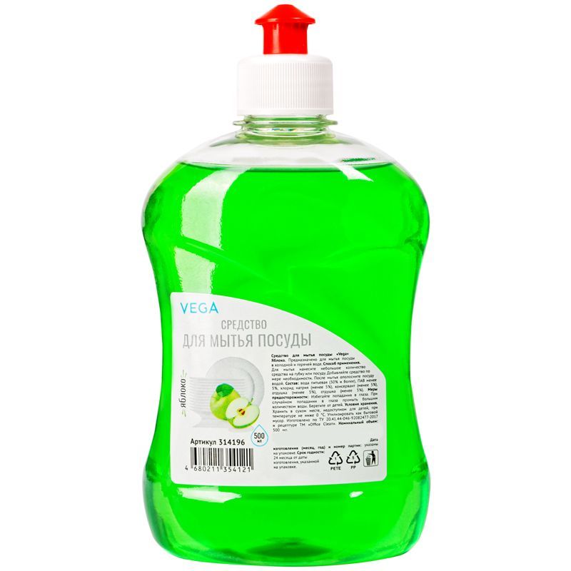 Средство для мытья посуды Vega "Яблоко", пуш-пул, 500мл