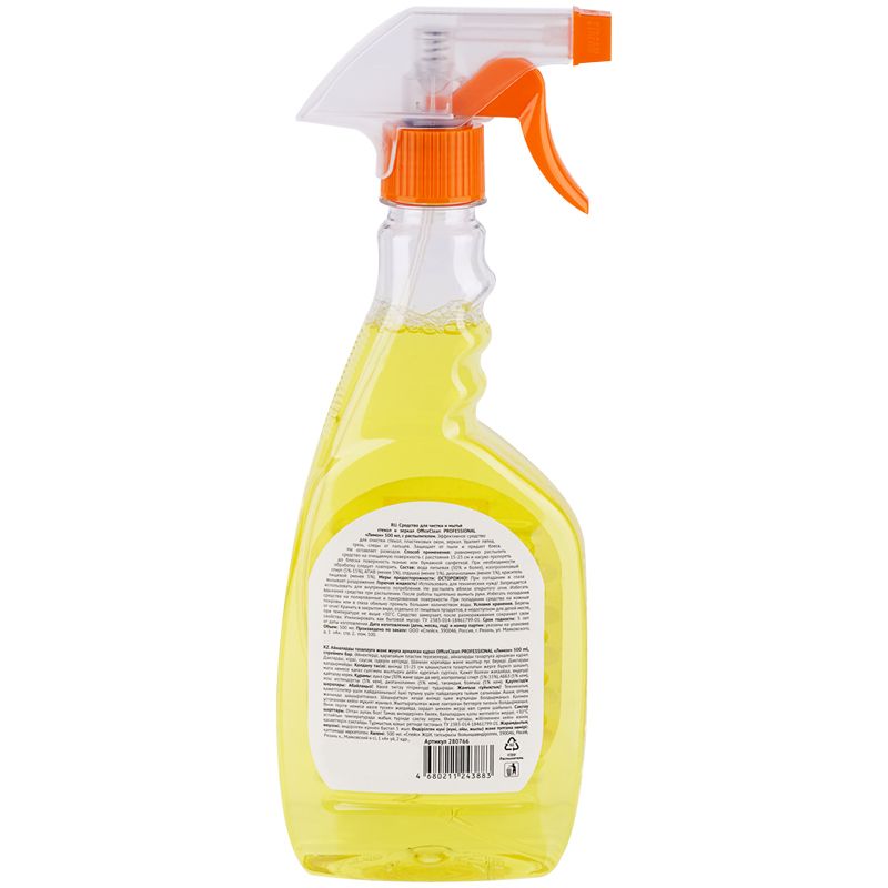 Средство для мытья стекол и зеркал OfficeClean "Лимон"с изопропиловым спиртом, 500мл, с курком
