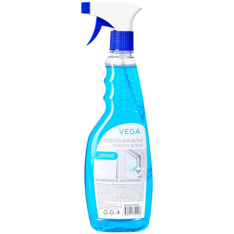 Средство для мытья стекол и зеркал Vega "Сияние", 500мл, курок