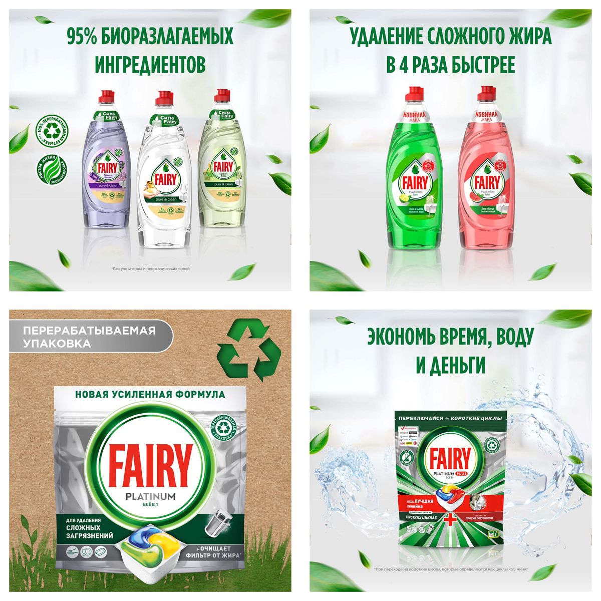 Преимущества капсул для посудомоечных машин Fairy Platinum: