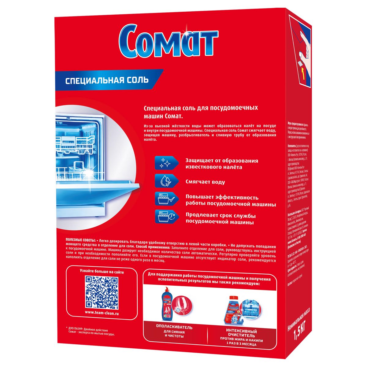 - Соль Somat продлевает срок эксплуатации посудомоечной машины.