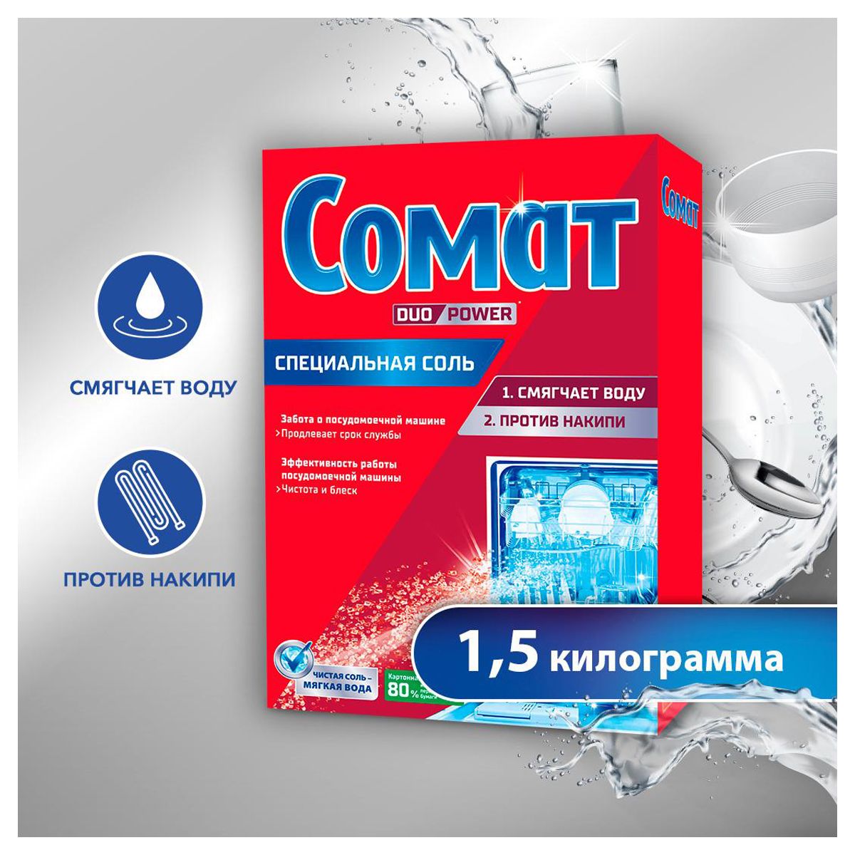 Соль для посудомоечных машин Сомат, 1,5кг