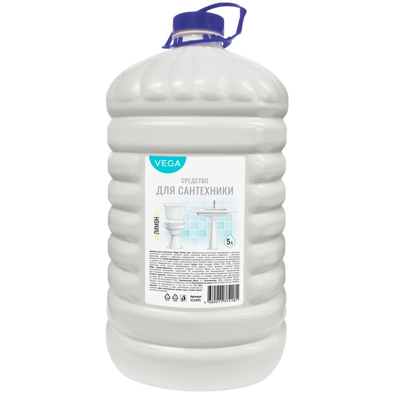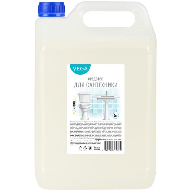 Чистящее средство для сантехники Vega "Лимон", гель, 5л