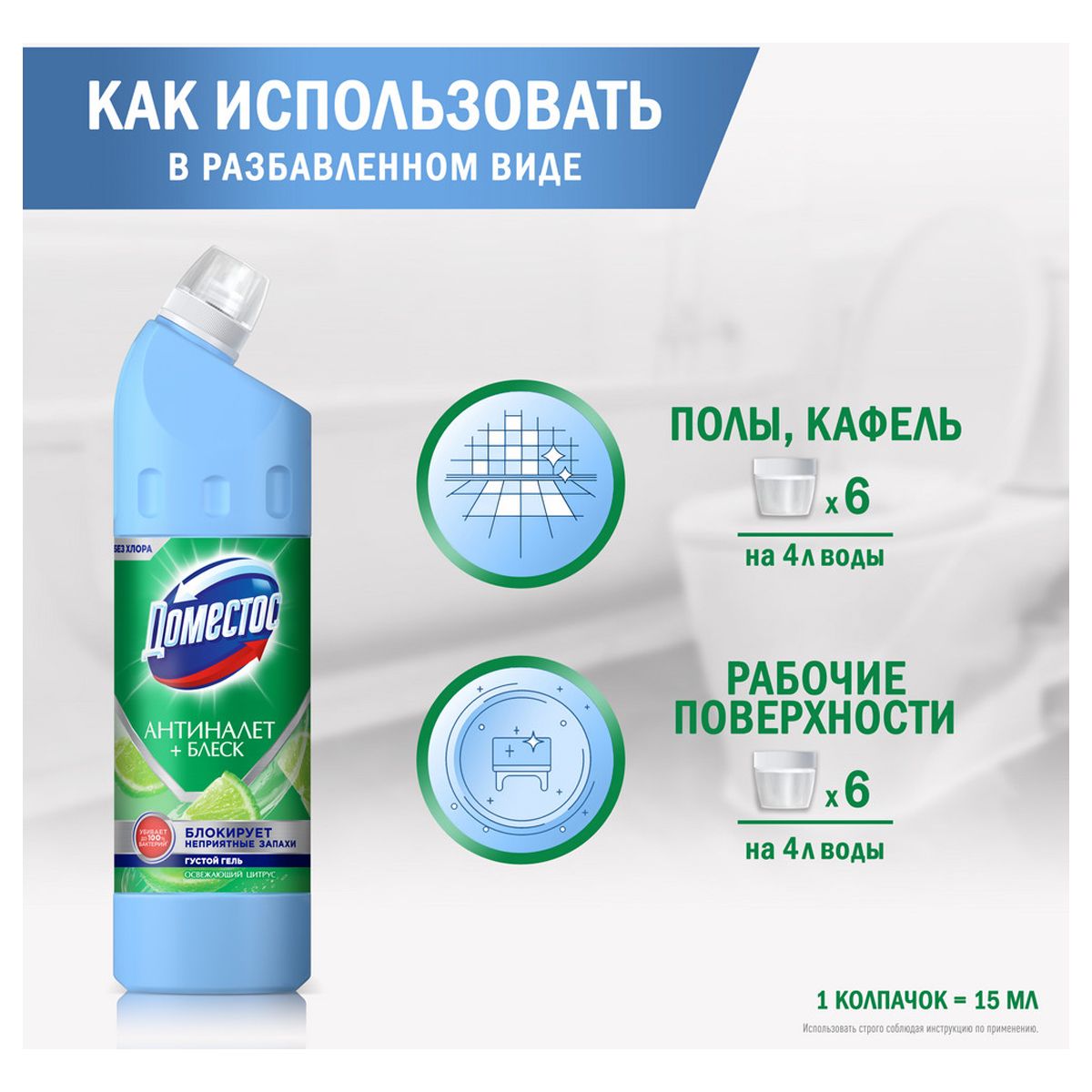 Чистящее средство универсальное Domestos "Антиналет+блеск. Освежающий цитрус", гель, без хлора, 750мл